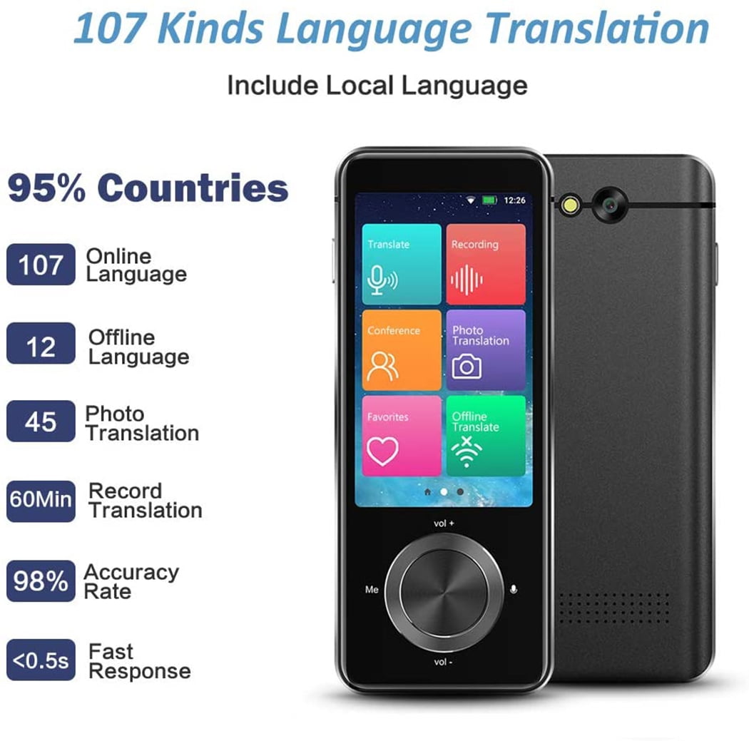 Real Time Language Translator Device 107 Languages Two Way Portable Instant Voice Translator Voice Text Photo Translation 3 Inch Hd Touch Screen Camera Audio Voice Walmart Com